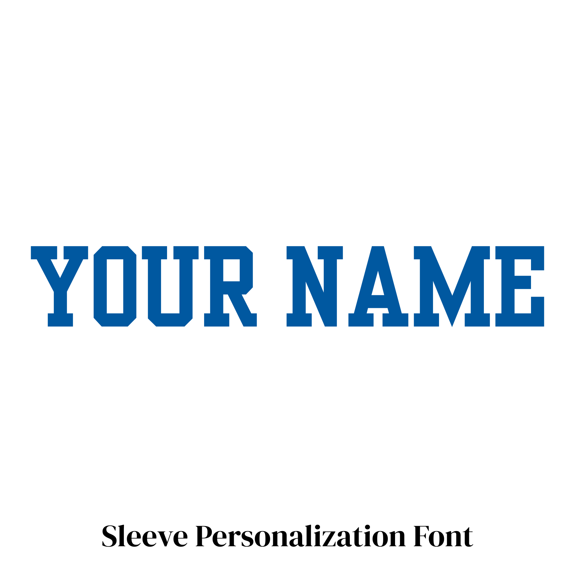 You can choose to add your swimmer's name down the sleeve (in blue varsity block font).